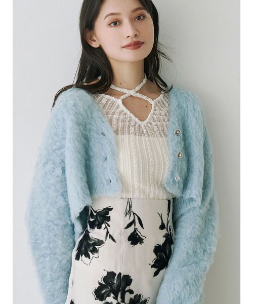 \ WEB限定でピンクカラーが登場 / カーリーな毛並みがかわいい冬にぴったりなニットカーディガン♡ ゆるやかなカールなのでカジュアルにもフェミニンにも着こなしやすい仕上がりです。 変形オーバルのメタルボタンが全体の雰囲気を引き締めるアクセントになっています。 ずっと触っていたくなるようなふわふわなニットで、寒い日のお出掛けを楽しめそうです! ピンクはWEB限定カラーです。 ▼スタイリング ハイウエストのデニムと合わせてカジュアルに、ワンピースやフレアスカート、 マーメイドスカートと合わせてフェミニンな着こなしなど様々なコーディネートをお楽しみください。 サテンナロースカートと合わせてすっきりとした着こなしもおすすめです。 【商品特徴】 透け感:なし 伸縮性:あり 生地の厚さ:厚手 サイズ感:ゆったり 裏地:なし ポケット:なし ※着丈が4cm長くなります。 ※前下がりが2.5cm下がります。 ※袖丈が3cm短くなります。 ※詳細画像が正しい仕様となります。 ※商品の特性上伸びやすいので、たたんで保管することをおすすめします。 ※着用画像はフラッシュの加減で実際の製品と色味等が異なる場合がございますので、生地のズームアップ画像をご確認ください。 ※ご利用の端末画面の設定により実際の商品と色味が異なる場合がございます。 ~~ZOZOTOWNでお買い物を楽しむ便利機能~~ ♡商品のお気に入り登録 完売カラーの再入荷時、ラスト1点の時、セール開始時に通知でお知らせします。 予約アイテムが入荷して通常販売になった時もお知らせしてくれます! ♡ブランドのお気に入り登録 新商品や再入荷、セールやクーポン情報など、 ブランドのお得な情報をいち早く受け取ることができます! ※実際にお届けする商品と仕様やサイズが異なる場合がございます。 また、生産の都合上、お届け時期が前後する場合がございます。