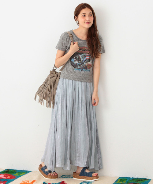 ギャザーマキシスカート☆光沢のある素材が新鮮な雰囲気のマキシスカート。たっぷりとギャザーを寄せて程よいボリューム感を出したシルエットは、Tシャツやニット等、様々なトップスと好相性♪今の時期から秋冬まで活躍してくれる一着です。※着用、お取り扱いの際は商品についておりますアテンションタグ、洗濯ネームを必ずご確認ください。店舗にお問い合わせの際は、全国のAnother Edition店舗まで下記の品名/品番をお申し付け下さい。品名:AEFC GAZ MAXI SK品番:56242991362