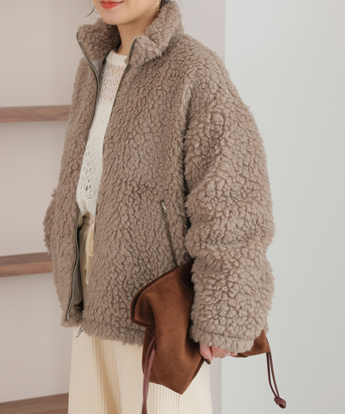 JOURNAL STANDARD毛足の長めのボアハイネックブルゾン。軽くて柔らかい手触りの素材で見た目にもぬくもりのある素材感です。ニュアンスのあるカラーにこだわり染めました。裾はゴムスピンドルでブラウジングでき、丸いシルエットに調整していただけます。ダブルジップなのも着こなしやすいポイントです。シンプルで合わせやすいデザインなので、気軽に羽織れて、真冬でもあたたかく着ていただけます。**********************透け感:なし裏地:あり伸縮なし光沢感:なし生地の厚さ:普通**********************【スタッフ着用コメント】《スタッフO》年齢:30代前半/身長:158cm/体型:普通/普段サイズ:M/着用サイズ:FREEサイズ感:ゆったりしています素材感:ボア着心地:軽くて羽織りやすいです※あくまでも個人の感想です。**********************※取り扱いについては、商品についている品質表示でご確認ください。※照明の関係により、実際よりも色味が違って見える場合があります。またパソコン・スマートフォンなどの環境により、若干製品と画像のカラーが異なる場合もございます。※商品の色味は、商品アップ画像をご参照ください。本体:ドライクリーニング