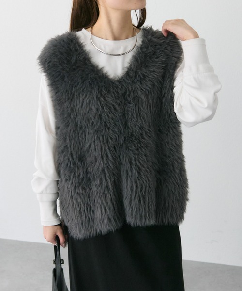 ピュアルセシン 2025 AW collection【Grace of Refined】◇シーズンムード満点!シャギーニットベスト◇●商品のお気に入り登録クーポンやタイムセール、再入荷通知やラスト1点などお得な情報を受け取ることができます。ご登録をお忘れなく◎●デザイン毛足のあるシャギー素材が秋冬シーズンにぴったりなベスト。ふんわりとしたボリューム感のある生地が、女性らしい柔らかなシルエットと華やかさを演出。顔周りとデコルテラインをすっきりとみせる、深めに開いたVネックで洗練された大人な印象に。着丈はアウトスタイルも決まる前後差があるデザインなので、着るだけでこなれ感が生まれます。コーディネートを選ばないシンプルさが、どんなシーンにも活躍すること間違いなし◎いつもの装いに気軽にプラスオンするだけで、トレンドを抑えたコーディネートへアップデートできるアイテムです。●スタイリングデニムやカットソー合わせでカジュアルに、ワンピースやスカートでエレガントな装いまで雰囲気を変えてお楽しみいただけます。キレイ目なブラウスやハイゲージのハイネックニットとあわせればオフィスカジュアルにも◎お出掛けには小さめのレザー調バックなどを合わせると品の良い女性らしいコーディネートに仕上がります。●素材ふわふわで滑らかな質感の毛足が長いシャギー素材。===============================洗濯方法:手洗い/ドライクリーニング/ウェットクリーニング透け感:なし裏地:なし伸縮性:あり光沢感:なし生地の厚さ:普通【スタッフコメント】年齢:20代前半/身長:153cm/普段着用サイズ:S~Mサイズ着用感:程よいゆとりでレイヤードしやすいサイズ感でした。気温に合わせてノースリーブインナー、半袖、シアーカットソー、薄手のニットとインナーを変えることでロングシーズン着回しできそうです。===============================※自重により伸びや型崩れすることがあります。ハンガーに掛けての保管はお避け下さい。※着用、お取り扱いの際は、商品についている品質表示とアテンションタグを必ずご確認下さい。※撮影場所やお使いのモニター環境により若干お色味が異なる場合がございます。特にロケの撮影では明るく見える傾向にございます。 ※予約商品はサンプルで撮影をしております。若干の仕様が変更になる場合がございますので予めご了承の上ご注文くださいますようお願いいたします。【予約品の入荷時期について】店舗入荷時期と予約商品のお届け時期が異なる場合がございますので、予めご了承ください