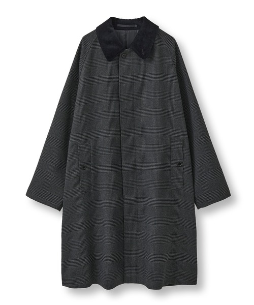 【クラシックなムードとモダンなゆったり感を両立した、特別なデザインのコート】一枚袖のラグランスリーブをベースにした特別なパターンが特徴のこのコートは、ブリティッシュ・チェックやスエード調タフタ、コーデュロイ素材の組み合わせにより、上質さとカジュアルな雰囲気を兼ね備えています。ゆったりとしたオーバーサイズシルエットで、リラックス感のある快適な着心地をお楽しみいただけます。オンオフ問わず、幅広いシーンで活躍する一着です。【デザイン/素材】ヴィンテージのバーバリーに見られるクラシックなコートをベースに、ブラウン千鳥格子・ブラックグレンチェックはトラッドなムードを演出するブリティッシュ・チェックを採用しました。そして、ブラックは合繊でありながらきめ細かな微起毛のあるポリエステル素材のスエード調タフタを使用。本物のスエードのような上品な手触りと、カジュアルな空気感を両立しています。襟のコーデュロイ素材がアクセントとなり、全体に上質さをもたらしながらも、タフで洗練された印象を与えてくれます。【シルエット】このコートは、肩から自然に落ちる一枚袖のラグランスリーブを採用したゆったりとしたオーバーサイズシルエットが特徴です。クラシックな趣を感じさせながらも、現代的なリラックス感をプラスした着心地で、肩周りに窮屈さを感じさせない快適な着用感をお楽しみいただけます。【ディテール】襟にはコーデュロイ素材を使用しており、トラッドでラギッドな雰囲気が魅力です。また、一枚袖のラグランスリーブをベースにした特別なパターンを採用することで、クラシックで上質な見た目の中に力強さを感じさせるデザインに仕上げました。クラシックなスタイリングに最適な一着で、オンオフ問わず幅広いシーンで活躍します。モデル:身長:185cm バスト:90cm ウエスト:77cm ヒップ:92cm 着用サイズ:03(L)※照明・光の加減、PCやスマートフォンなどの環境により、製品と画像のカラーの見え方が異なる場合がございます。※画像はサンプルのため、色味やサイズ等の仕様が変更になる場合がございます。※サイズは弊社規定の採寸によって記載しておりますが、若干の個体差が生じる場合がございます。