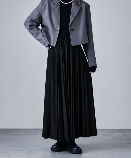 シンプルなトップスとあわせてもそれなり以上に。 シーズンムードの高まるフェイクスエードで仕立てたプリーツスカートです。 規則正しく並んだプリーツの立体感、動くと広がりが美しいフレアシルエットのほど良い甘さがレディな印象。 スエード生地特有の微起毛素材の柔らかな手触りで、品をキープしたまま肩の力が抜けた仕上がりへと導いてくれます。 ベルトレスなウエストはトップスをタックインしてスタイルよく、揺れ感はあるけど縦に落ちるラインも強調できる。 スタイリッシュなジャケットスタイルや、スウェットやロゴTシャツなどのカジュアルダウンした着こなしもおすすめです。 etoll. 「For me.」 気ままに自由な服選びで、私だけのファッションを楽しむ女性へ捧げるセレクトショップ。 系統に捉われず、気分を高めたい日や特別な日、 いつでも私の好きを身につけましょう。 自分自身のためにお洒落をしたい気持ちを大切に、 豊かな個性とトレンドを取り入れたアイテムで、少しだけお手本になるようなスタイリングを提案します。 【備考】 ・伸縮性あり ・透け感なし ・裏地なし ・手洗い可
