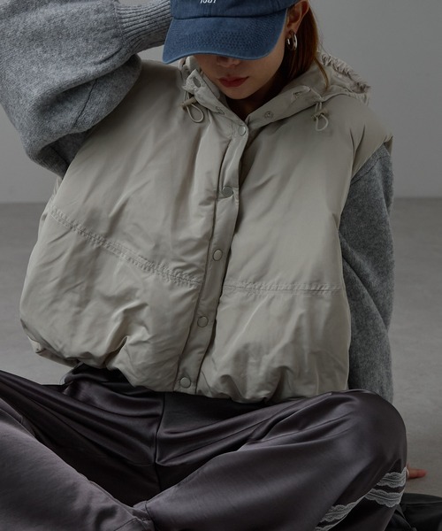 【r./アールドット】 タイムレスなアイテムにトレンドを加えた大人の抜け感カジュアルルック。 instagram→@r._officialshopふっくらとした中綿とフードデザインが魅力! ■point ・保温性抜群の中綿入り◎ ・ボリューム感のあるフードが、顔まわりを華やかに◎ ・スタイルアップ効果が期待できるショート丈。 ■material マットな質感でさらっとした手触りの、シャカシャカとしたタフタ素材に中わたが入っています。 ********************** 裏地 あり 透け感 なし 伸縮性 なし 光沢 なし 生地の厚地 厚地(中わた入り) 洗濯方法 家庭洗濯不可、ドライクリーニング可 ※着用、お取り扱いの際は商品についておりますアテンションタグ、洗濯ネームを必ずご確認ください。 ********************** ■styling 軽やかなファイバーダウンを中綿に使用しているため、暖かさを保ちながらも快適な着心地◎ 厚手のインナーにもレイヤードしやすいゆとりのあるサイズ感です。 ボリューム袖のニットやスウェットにベストを重ねて、ボトムスにはサテンパンツやイージーパンツを合わせると大人のリラックスカジュアルスタイルが完成◎ フーディーやロンTに、裾を絞ったベストをレイヤードしてキャップやニット帽、太めのデニムやカーゴパンツを合わせるとストリートテイストに。 きれいめなロングワンピースやIラインスカートにベストを羽織ると、甘すぎない大人のフェミニンスタイルに。 あえてボリュームのあるベストを合わせることで、全体のバランスが取れ、旬なシルエットが生まれます。 ■information 【お気に入り登録がオススメ!】 ・商品のお気に入り登録 お好きなカラーをお気に入り登録していただくと、再入荷やラスト1点、プライスダウンの通知も受け取ることができます。 ・ブランドのお気に入り登録 新作や再入荷情報など、いち早くお得な情報を受け取ることができます。 ※撮影のライティングやご覧のモニター環境により、画像の色味と多少異なる場合がございます。 ※他のキャンペーンにより、期間中に価格が変動する場合があります。 ※セールは予告なく終了させていただく場合もあります。