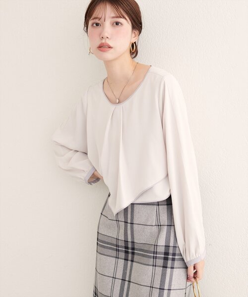 【2025AW natural couture】アシメパイピングボウブラウス■Design 洗練された大人の女性にぴったりの、アシンメトリーデザインが目を引くブラウス。オフィスにも、ちょっとしたお出かけにも、おすすめのアイテムです。アシンメトリーな裾のラインが、動きのあるシルエットを演出。シンプルな着こなしに遊び心をプラスし、ワンランク上のお洒落を叶えます。首元と袖口にあしらわれたパイピングが、全体を引き締め、上品な印象に。さりげないアクセントが、コーデにこなれ感を与えてくれる一枚です。■Stylingオフィスシーンでは、タイトスカートやテーパードパンツと合わせて、知的で上品な印象に。足元はパンプスやローファーで、きちんと感をプラスするのがおすすめです。カジュアルなシーンでは、デニムやワイドパンツと合わせて、こなれ感のある着こなしに。スニーカーやサンダルで、リラックス感を演出するのも素敵です。アクセサリーは、華奢なネックレスやピアスで、女性らしさをプラスするのがおすすめ。シンプルなデザインなので、大ぶりのアクセサリーとも相性抜群です。■Fabricさらりとした肌触り。===================お手入れ方法:手洗い伸縮性:なし裏地:なし光沢感:なし透け感:アイボリーややあり生地感:さらりとした生地感===================※着用、お取り扱いの際は、商品に付いている品質表示とアテンションタグを必ずご確認ください。【お気に入り登録でお得な情報がいっぱい】・「商品のお気に入り登録」で再入荷通知や、ラスト1点の通知、セール通知をいち早く受け取ることができます。・「ブランドのお気に入り登録」で新商品や再入荷など、お得な情報を受け取ることができます!※店舗の入荷時期は商品によって異なります。店頭の在庫状況につきましては各店舗にてお問い合わせください。※撮影時の光の関係で、画面上の画像と実際のお色とでは若干の色差が生じる可能性がございます。また、ご覧いただいているモニター画面や、お使いのブラウザによっても、お色の違いがございますことをあらかじめご了承くださいませ。202509122025AW_natu25AW