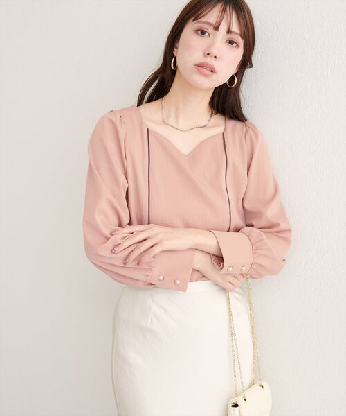 【2025AW natural couture】 ハートネックパイピング配色ブラウス WEB限定カラー:ピンク ■Design 上品な甘さをまとう、大人のためのブラウス。デコルテを美しく見せるハートネックと、繊細なパイピングが印象的なブラウス。 ネックラインは、デコルテをすっきりと美しく見せるハートネック。女性らしさを引き立てながら、上品で落ち着いた印象を与えます。 ネックラインとボディラインに沿って施されたパイピングが、デザインのアクセント。 さりげない配色が、全体を引き締め、メリハリのあるシルエットを叶えます。 袖は、ふんわりとしたボリュームスリーブ。 気になる二の腕をカバーしつつ、フェミニンな印象をプラス。 袖口にはパール調のボタンがあしらわれ、上品なアクセントになっています。 ■Styling ブラウスにタイトスカートやテーパードパンツを合わせれば、オフィスにぴったりのきちんとスタイルに。 ジャケットを羽織れば、よりフォーマルな印象になります。 デニムやワイドパンツと合わせて、カジュアルダウンした着こなしもおすすめです。 足元は、スニーカーやフラットシューズでリラックス感をプラス。 フレアスカートやレーススカートと合わせて、フェミニンな着こなしも素敵です。 ヒールを合わせれば、より女性らしい雰囲気に。 ■Fabric さらりとした肌触り。 表面には細やかな凹凸があり、上品な印象を与えます。 =================== 伸縮性:袖口ゴム部分のみあり 裏地:なし 光沢感:なし 透け感:アイボリーややあり 生地感:さらりとした生地感 =================== ※着用、お取り扱いの際は、商品に付いている品質表示とアテンションタグを必ずご確認ください。 【お気に入り登録でお得な情報がいっぱい】 ・「商品のお気に入り登録」で再入荷通知や、ラスト1点の通知、セール通知をいち早く受け取ることができます。 ・「ブランドのお気に入り登録」で新商品や再入荷など、お得な情報を受け取ることができます! ※店舗の入荷時期は商品によって異なります。 店頭の在庫状況につきましては各店舗にてお問い合わせください。 ※撮影時の光の関係で、画面上の画像と実際のお色とでは若干の色差が生じる可能性がございます。 また、ご覧いただいているモニター画面や、お使いのブラウザによっても、お色の違いがございますことをあらかじめご了承くださいませ。 20250912 2025AW_natu 25AW
