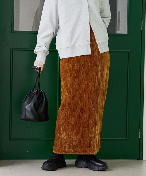 光沢ベロアで上品に。美シルエットの楊柳ナロースカート ■同シリーズのご案内 楊柳ベロアイージーパンツ(品番:76406000014) ■デザイン/素材 ナローシルエットながらストレッチが効いていて、快適なはき心地が魅力のスカート。 楊柳のような凹凸感と光沢を持つ独特なベロア素材を使用し、上品さと存在感を兼ね備えています。 すっきりとしたシルエットで、どんなトップスとも相性抜群。 きれいめカジュアルなスタイリングにおすすめです。 透け感:なし 生地の厚さ:普通 光沢感:あり 裏地:あり ポケット:あり 家庭洗濯:可能(ネット使用) 【注意点】 ※《ベロア・ベルベット・別珍製品のお取扱い注意》生地の美しさをいつまでも保ち続けてご愛用いただくために、次の点にご注意下さい。 ・水滴などが付着した場合は、すぐに拭き取って下さい。・着用による毛羽乱れ ※撮影商品はサンプルの為、実際の仕様と異なる場合がございます。 ※画像の商品は光の照射や角度、お使いのモニター環境により、実物と色味が異なる場合がございます。スタジオ物撮りの画像が実物の色味に一番近くなっております。 ※予約商品の場合、お届け予定はあくまでも目安となります。 生産の都合上、お届け時期が前後したり実店舗入荷時期とずれる場合がございますので、あらかじめご了承ください。 品名:ヨウリュウベロアナローSK 品番:76706000005