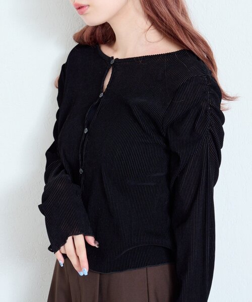 柔らかなベロアフロッキー素材を使用した、上品な微光沢が魅力のカーディガン※サイズSとFREEサイズの着丈の差は6cmです。(詳しくはサイズ詳細をご覧ください)■デザイン細やかなストライプ柄が縦のラインを強調し、すっきりとした印象に。ほどよい透け感とさらっとした肌触りで、シーズンを問わず軽やかに羽織れます。前後2WAY仕様なので、ボタンを前にして羽織ったり、後ろに回してプルオーバー風に着こなしたりとアレンジ自在。■生地感表地はナイロン100%の薄手でさらっとしたベース生地。ほんのり透け感があり、軽く柔らかい質感です。***********************洗濯方法:手洗い可能裏地:なし透け感:ややあり伸縮性:ややあり光沢感:あり生地の厚さ:薄い***********************■スタイリングコンパクトな丈感で、ハイウエストのボトムやワンピースとのレイヤードにも好相性◎キャミワンピやチュニックのインナーとしても使えます。デイリー使いからちょっとしたお出かけまで幅広く活躍する、着回し力抜群の一枚です。▼おすすめスタイリングアイテムKANGEKIパンツカーブステッチデニムチェックキャミビスチェ■STAFF着用コメント161cm/骨格ストレート(着用サイズ:F)伸縮性があり、細見えするトップス!ボタンを開けたらカーディガンにも◎153cm/骨格ウェーブ(着用サイズ: F)袖のくしゅくしゅデザインが腕を細く見せてくれます!一枚で着ても、羽織にしても、チュニックなどのインナーとしても使えて便利です!149cm/骨格ナチュラル(着用サイズ:S)コンパクトなサイズ感でワイドボトムやスカートとも相性◎元から短いのですが少しお腹見せスタイルにしたかったのでカップ付きキャミに裾を入れて着用しています。薄手なので寒い季節にはインナーとしても。【お取り扱いの注意】※着用時、洗濯時は必ず取り扱い表示・タグをご確認の上、お取り扱いください。※サイズ採寸は各モールによって異なり、多少の誤差が生じる可能性がありますのでご了承ください。※撮影画像はサンプル品を使用しているため、実際の商品とカラー、仕様、加工、サイズが若干異なる場合がございます。使用しているパソコンのモニター設定や、携帯電話のメーカー・機種により実際のカラーと異なって見える場合がございます。予めご了承ください。▼商品のお気に入り登録ハートマークをクリックし、お好きなカラーを選んでお気に入りに登録完売カラーの再入荷通知や、ラスト1点の通知、セールの通知も受け取ることができます。▼ブランドのお気に入り登録新商品や再入荷等、いち早くブランドのお得な情報を受け取ることができます。<返品・キャンセルについて>・着用・洗濯後の返品・ご交換は致しかねます。・商品到着後、着用前に商品を確認して頂きますようお願い致します。