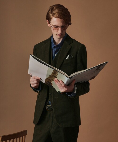 ベーシックだけれど差を付けられる3ピース対応ジャケット 【デザインポイント】 ・シルエットにこだわったブランド定番テーラードジャケット ・秋冬シーズンにピッタリなコーデュロイ素材 ・オンにもオフにも着用出来るベーシックジャケット 定番テーラードジャケットは、シルエットにこだわり、細部まで微調整されたパターンメイキングにより、着る人の体型を美しく見せるだけでなく着心地も◎。 ウエストや背中のラインを美しいカーブに整えながら、窮屈感を感じさせません。 シックで落ち着いた色合いに対して遊びの利いた柄シャツを裏地として採用し、オンもオフも使いやすく、幅広いシーンで活躍すること間違いありません。 さらに40ctでは恒例の胸ポケットの袋布を引き出せばチーフのように見せられるギミック付き。 このジャケットは、正統派のテーラードデザインと秋冬にぴったりな素材が融合された、ベーシックで使い勝手の良いアイテムです。 【仕様】 ・ポケット数:前×3 内側×2 ・総裏 【素材・特性】 格子状にカッティングしてキャラメルのように見えるコーデュロイ素材を使用。 程よいハリと滑らかでソフトな風合いの生地となっています。 同素材でベスト(205-44009)、スラックス(205-74008)も展開。 40ct&525らしい柄シャツを合わせた3ピーススタイルはもちろん、カットソーやニットと合わせたOFFコーデもおすすめです。 ※照明の関係により、実際よりも色味が違って見える場合があります。また、パソコン・スマートフォンなどの環境により、若干製品と画像のカラーが異なる場合もございます。 店舗へのお問い合わせ商品番号:205-44008 ●製品寸法: 01(S):着丈70cm B100cm 袖丈60cm 肩幅43cm 02(M):着丈72cm B104cm 袖丈62cm 肩幅45cm 03(L):着丈74cm B108cm 袖丈63cm 肩幅46cm 04(LL):着丈76cm B112cm 袖丈64cm 肩幅48cm 備考:重量:03(L)約740g