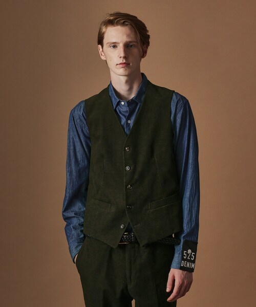 ベーシックだけれど差を付けられる3ピース対応ベスト 【デザインポイント】 ・シルエットにこだわったブランド定番ベスト ・秋冬シーズンにピッタリなコーデュロイ素材 ・オンにもオフにも着用出来るベーシックベスト ベーシックなデザイン、シルエットでセットアップはもちろん、単品使いもできるアイテムとなっています。 シックで落ち着いた色合いに対して遊びの利いた柄シャツを裏地として採用し、オンもオフも使いやすく、幅広いシーンで活躍すること間違いありません。 【仕様】 ・ポケット数:前×2 ・総裏 【素材・特性】 格子状にカッティングしてキャラメルのように見えるコーデュロイ素材を使用。 程よいハリと滑らかでソフトな風合いの生地となっています。 同素材でジャケット(205-44008)、スラックス(205-74008)も展開。 40ct&525らしい柄シャツを合わせた3ピーススタイルはもちろん、カットソーやニットと合わせたOFFコーデもおすすめです。 ※照明の関係により、実際よりも色味が違って見える場合があります。また、パソコン・スマートフォンなどの環境により、若干製品と画像のカラーが異なる場合もございます。 店舗へのお問い合わせ商品番号:205-44009 ●製品寸法: 01(S):着丈54cm B99cm 肩幅34cm 02(M):着丈56cm B103cm 肩幅35cm 03(L):着丈58cm B107cm 肩幅37cm 04(LL):着丈60cm B111cm 肩幅38cm 備考: