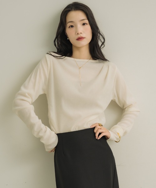 シアーベロアドレープトップス さりげない抜け感が叶う、ドレープデザイン。一枚で大人の余裕を引き出すトップス。 ≪リアルタイムで情報をチェックしたい方はこちら!≫【Instagram/Threads】@neuna_official ■point・首元にタックが入ったデザインでで女性らしさを演出・落ち感のある素材が生み出すエレガントなドレープ感・着るだけでニュアンスのあるスタイリングが完成・デイリーにもオフィスにも映える万能トップス・シンプルながらもこなれ感をプラスするベロア ・ほどよいシアーが抜け感を演出してくれます ■detail柔らかな素材感と絶妙な光沢感が、上品さを引き立てるプルオーバー。タックを施したデザインで立体感を生み、シンプルながらも表情豊かな一枚に。さりげないドレープで、さらっと着るだけで女性らしい抜け感を楽しめます。 ■fabric……………………透け感:ややあり厚さ:薄手伸縮性:なし裏地:なし…………………… ■coordinateワイドパンツと合わせたスタイリッシュな着こなしから、タイトスカートと合わせたレディなスタイルまで幅広く対応。デニムでカジュアルダウンしても大人の余裕を感じさせるスタイリングが完成します。 ≡ 《お気に入り登録》でお得な情報がいっぱい ≡・「商品のお気に入り登録」で再入荷通知や、 ラスト1点の通知、セール通知も受け取ることができます。・「ブランドのお気に入り登録」で新商品や再入荷など、 お得な情報を受け取ることができます! ≡ NÉUNA 公式 SNS ≡公式SNSではstaff snapも掲載しております。是非参考にしてみてください♪【Instagram/Threads】@neuna_official【Tik Tok】@neunaofficial ※詳しいお手入れ方法はアイテムに付属している表示タグをご参照ください。※ご覧のモニター環境により、画像の色味と多少異なる場合がございます。※ご注文いただいた予約商品のお届け時期の確認は、注文履歴ページより行えます。※検品による遅延等を受ける可能性が稀にございます。※インナーは別売りとなります。