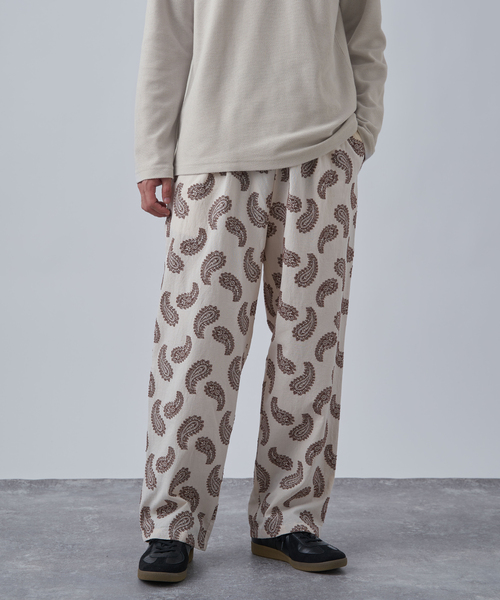 人気シリーズスリーピングパンツが今期も登場。■デザイン全面に施された立体的な「カットジャガード」柄が特徴。単なるプリントではなく、織りで柄を表現することで、奥行きのある豊かな表情を生み出しています。程よくゆとりのあるリラックスフィットのシルエットは、ウエストゴム仕様で穿き心地も抜群。■素材軽やかでストレスフリーな穿き心地でありながら、凹凸感のあるカットジャガード素材を製品染しているので、立体感があるのが特徴的です。綿ならではの柔らかさと吸湿性に加え、レーヨンが持つ滑らかな肌触りと独特の落ち感、そしてポリエステルによる耐久性を兼ね備えています。肌離れも良く、これからのシーズンにも快適にお召しいただけます。■コーディネートスリーピングパンツの名の通り、お家でのリラックスタイムから、Tシャツやシャツと合わせたデイリーカジュアルまで、幅広いシーンで活躍します。シンプルなトップスを合わせるだけで、着こなしのアクセントになる一本です。【CALIFORNIA RANCH HOUSE】カリフォルニアのランチハウスを改装してモーテルをOPENしたという仮想のコンセプトのもとにスタート。西海岸の緩い雰囲気を残したままトレンド感のあるカジュアルイージーウエアを提案。コンセプトにもある仮想のdrive in motelをビジュアル化したプリントTシャツシリーズ。カリフォルニアのリゾート地tahoe店をビジュアル化。《画像についてのご注意》※照明の関係により、実際よりも色味が違って見える場合があります。またパソコン・スマートフォンなどの環境により、若干製品と画像のカラーが異なる場合もございます。※商品の色味は、商品アップ画像をご参照ください。【商品のお気に入り登録について】「カートに入れる」右側のハートマークを押していただくと、残り1点、セールなどの通知を受け取ることが出来ます。【再入荷お知らせについて】「カートに入れる」から「再入荷お知らせ」を押していただくと完売した商品が再入荷した際に、通知を受け取ることが出来ます。本体:洗濯機洗い(弱), 本体:洗濯機洗い(ネット使用)