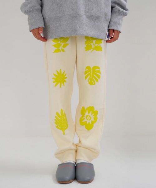 リラックスもスポーツも。ボタニー柄スウェット ボタニー柄のシルクスクリーンを施したコットンスウェットパンツ。 サイドとヒップの両方にポケットを備えており、ウエストは調整可能な丸ひも付き。 裾口はリブ仕様で、スポーツ時やリラックスタイムなど、どのシーンでも活躍します。 ▼素材感 しっかりとした厚みのあるコットンスウェット素材です。 ▼着心地 生地に伸縮性があり、スポーツ時やリラックスタイムなど、どのシーンでも活躍します。 ------------------------------------------- 透け感:なし 裏地 :なし 伸縮性:あり 光沢感:なし 生地の厚さ:普通 ------------------------------------------- お気に入り登録のおすすめ ▼商品のお気に入り登録 お気に入りアイテムの再入荷や在庫残り1点などの通知を受け取ることができます。 ▼ブランドのお気に入り登録 新作アイテムの入荷や人気アイテムの再入荷、おすすめトピックスなど、いち早くブランドの情報を受け取ることができます。 ------------------------------------------- ※この商品は、摩擦(特に湿った状態での摩擦)や汗、雨などで他の衣料や下着(特に白物)に色移りする場合がございます。ご着用の際は十分にご注意ください。 ※濡れたまま放置すると色移りや色落ちすることがありますので洗濯後は直ちに形を整えて干してください。 ※漂白剤及び漂白剤入りの洗剤を使用しないでください。 ※洗濯の際、ぬるま湯やお湯を使用すると色落ち、色移りしやすくなります。ご注意ください。 ※洗濯の際は他の物とは洗わず、単体洗いすることをお勧め致します。 ※プリント部分にはアイロンをかけないでください。 ※裏返してネットに入れて洗濯して下さい。 ※洗濯、着用を繰り返すことで、プリント部分が割れる場合があります。 ※サンプルを使用して撮影しております。実際の商品と仕様が異なる場合がございます。予めご了承ください。 ※着用画像の色味が実物に近いです。但し、お使いの端末により表示される色味に多少の違いが生じます。 ※こちらの商品は、弊社管理上のカラーを表記しておりますため、タグのカラー表記と異なる記載となっている場合がございます。 ※着用、お取り扱いの際は、商品についている品質表示とアテンションタグを必ずご確認ください。 ------------------------------------------- 【TUCKSHOP/タックショップ】 "学校の売店”という架空の舞台をモードに再解釈した、ユニセックスなアパレルブランド。 ユニフォーム的なデザインに、学生生活の記憶や空気感を織り込んだコレクション。 ベーシックな中にちょっとしたディテールや色づかいで”遊び”を演出し、どんなライフスタイルにも馴染むアイテムを提案します。 TUCKSHOPは、“過去に戻る”のではなく、“記憶を着こなす”服を提案していきます。