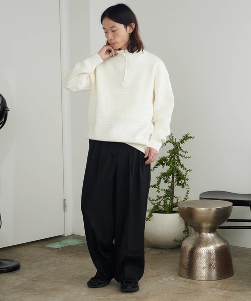 ストレスレスで着用できるジャガードニット。【ポイント】●全体的にジャガードでデザインを絶妙に変えながら ボーダー柄を表現。●ハーフジップ仕様のスタンドネックとなっており、 ジップ部分は頑丈な設計に。●ニット特有のチクチク感が無く、ストレスがなく着用可能。●袖口と裾はリブ仕様となっており、伸縮性があるため 簡単に着脱でき、冷気の侵入をシャットアウト。【おすすめコーディネート】デニムパンツやスウェットパンツなどのカジュアルなボトムと相性抜群です。セットアップやフライトジャケットなどのインナーとしてもおすすめです。足元にはローファーやブーツなど落ち着いたアイテムが◎【ROOPTOKYO ZOZOTOWN お買い物ガイド】▼商品をお気に入り登録!完売商品の再入荷やラスト1点の通知、セール開始時にお知らせ!▼"ROOPTOKYO(ループトーキョー)"をお気に入りブランドに登録!新商品や再入荷など、ブランド最新情報をいち早くお知らせ!是非、ご活用いただきお買い物をお楽しみください!