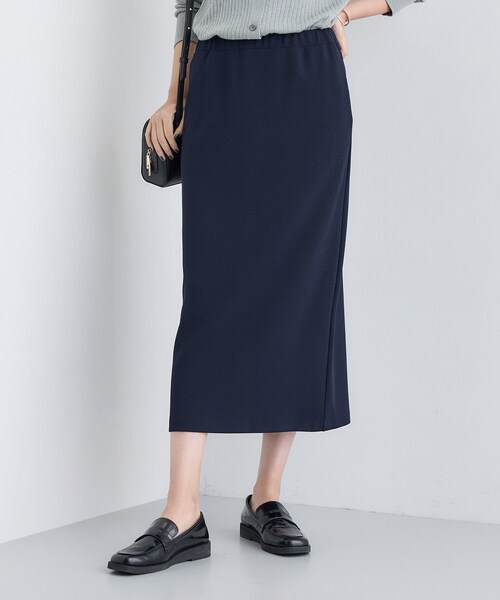 【デザインポイント】凹凸感のあるふっくらもちっとしたタッチが特徴のダンボールジャージで、シンプルながらも映えるIラインスカートをデザインしました。ウエストゴムでイージーな着心地ながらも、すっきりとまっすぐなラインで女性らしさ引き立つシンプルなシルエットです。【スタイリングポイント】同素材トップス(127-14010)とセットアップでの着用が可能です。シンプルなIラインで汎用性高く、Tシャツやシャツなどのカジュアルアイテム合わせもおすすめです。【素材ポイント】シボ感のあるアンティーク調の表情と、ふっくらとしたソフトな風合いが特徴のダンボールジャージになります。高いストレッチ性を持った快適な着心地に、軽くてシワになりにくいイージーケア性も兼ね備えた素材になっております。【仕様】・ポケット数:横×2・ウエスト総ゴム・裏地なし※オフホワイト(003)はやや透け感があります。※照明の関係により、実際よりも色味が違って見える場合があります。また、パソコン・スマートフォンなどの環境により、若干製品と画像のカラーが異なる場合もございます。モデル情報:身長167cm B79 W59 H87 着用サイズ:38(M)店舗へのお問い合わせ商品番号:127-74010●製品寸法:05(XXS):W59cm H88cm 総丈74cm13(LL):W79cm H108cm 総丈82cm15(3L):W83cm H112cm 総丈82cm19(5L):W91cm H120cm 総丈82cm36(S):W65cm H94cm 総丈77cm38(M):W68cm H97cm 総丈79cm40(L):W71cm H100cm 総丈81cm備考: