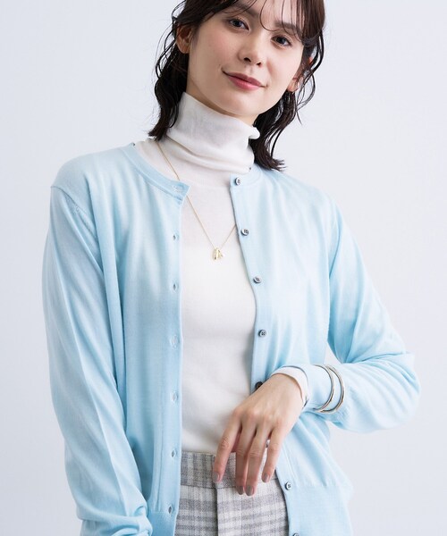 【デザインポイント】 良質なウールを贅沢に使い、18ゲージで編み上げたハイゲージカーディガン。 すっきりとした丸首デザインが上品で、オフィスから休日まで幅広く活躍します。 【スタイリングポイント】 きれいめパンツを合わせてすっきりとしたシルエットで知的な印象に。 ワイドパンツ合わせでリラックス感のある着こなしに上品さをプラス。 プリーツスカートを合わせて女性らしい揺れ感と合わせてフェミニンな装いに。 1枚でも羽織りとしても使えるアイテム。 Tシャツやシンプルなブラウスとのアンサンブルスタイルもおすすめです。 【素材ポイント】 オーストラリアウールの中でも上位の極細で繊細なエクストラファインウール原料を選別し、よりソフトでなめらかな風合いを演出するウール素材です。 自然な環境で大事に育まれた羊毛の繊維にスーパーウォッシュ加工を施し、梳毛紡績テクノロジーにより紡ぎ出され、より軽やかで、洗練されたハイクオリティーの素材感を存分に纏ったウール糸『Easycare』です。 抗ピリング性で毛玉が発生しにくく、家庭洗濯可能なウール梳毛素材です。 ※照明の関係により、実際よりも色味が違って見える場合があります。また、パソコン・スマートフォンなどの環境により、若干製品と画像のカラーが異なる場合もございます。 【生地詳細】 透け感:ややあり 伸縮性:あり 生地の厚み:普通 裏地:なし 洗濯方法:手洗い可 モデル情報:身長167cm B79 W59 H87 着用サイズ:38(M) 店舗へのお問い合わせ商品番号:127-34072 ●製品寸法: 05(XXS):着丈53cm B88cm 袖丈52cm 肩幅35cm 13(LL):着丈58cm B104cm 袖丈59cm 肩幅39cm 15(3L):着丈59cm B110cm 袖丈60cm 肩幅40cm 19(5L):着丈61cm B118cm 袖丈61cm 肩幅41cm 34(S):着丈55cm B92cm 袖丈59cm 肩幅36cm 38(M):着丈56cm B96cm 袖丈59cm 肩幅37cm 備考: