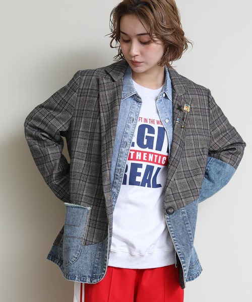 デニムの切り替えが目を引くテーラードジャケット。秋らしいマニッシュなチェック×デニムの異素材をドッキングさせたデザインで、一枚でコーディネートの主役になります。取り入れるだけでトレント感のあるジャケットです。※ラペルについているのピンバッジは付属ではございません。【Re Fiina】- WEB限定ブランド -” Be Playful ”自分らしく自由にオシャレを楽しみたい女性へ、”遊び心のある大人カジュアル”を提案します。※写真はサンプルを使用して撮影しています。実際にお届けする商品と、仕様やサイズ感、色味が若干異なる可能性がございます。【 お買い物をもっと楽しんでいただく為に 】▼商品のお気に入り登録▼完売カラーの再入荷や、ラスト1点、セールの通知をお知らせします。割引クーポンの発行などお得な情報も!▼ブランドのお気に入り登録▼新商品や再入荷など、いち早くグレディブリリアンのお得な情報を受け取ることができます! 【Gready Brilliant】「ほどよい存在感」を大切にする大人の女性のためのセレクトショップ。