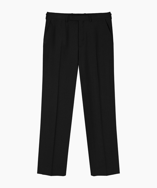 オリジナルのウールギャバ素材を使用したストレートスラックス。タテ糸にスーパー130s糸、ヨコ糸にレギュラー糸を使用することで、上品でしなやかな風合いを持ち、仕立て栄えの良い素材に仕上げています。NANO BLACKはナノレベルの染色でより深い黒を表現し、撥水性と防汚性を備えています。ほどよくゆとりを持たせたストレートシルエットが特徴です。ウエストはアジャスターで左右各3段階のサイズ調整ができます。