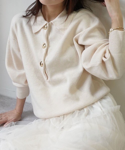 【CORNERS】 スタイルと快適さを兼ね備えた「金ボタンポロニット」は、この季節にぴったりの一枚です。 上質な素材で仕立てられ、肌触りは柔らかく、どんなシーンでもリラックスして着用できます。 シンプルながらもエレガントなデザインが際立ち、大人のカジュアルスタイルを格上げします。 特徴的な金色のボタンがアクセントとなり、ポロニット独自の魅力を引き立てます。友人とのランチやオフィスでのビジネスカジュアル、さらには休日のお出かけにも最適です。 このアイテムひとつで、多彩なコーディネートが楽しめること間違いなしです。 ▽生地感 透け感:あり 〇〇〇●〇 なし 生地の厚さ:厚い 〇●〇〇〇 薄い 裏地:なし 伸縮性:あり ◆商品のお気に入り登録 【お気に入りに登録】を是非ご活用ください。 再入荷の通知や、ラスト1点の通知、セールの通知がいち早く届きます。 ◆ブランドのお気に入り登録 新商品や再入荷など、いち早くブランドのお得情報が届きます。 ◆ATTENTION◆ ※取り扱いについては、商品についている品質表示でご確認ください。 ※出来る限り忠実に再現するよう務めておりますが、 ディスプレイ画面などの環境上、店頭・屋外での撮影画像は、 光の当たり具合で色味が違って見える場合が あります。ご了承下さい。 ※こちらの商品は水や雨に濡れたり、汗による湿気、乾燥状態での摩擦により、薄い色の衣服などに 色移りする可能性がございます。 予めご了承いただき、ご使用の際にはご注意くださいますようお願い致します。 ※平置きでの実寸のため若干の誤差が生じる場合がございます。 ※生産時期により若干の色ブレやサイズの変動が生じる場合がございます。 ※また製品加工上、お手元に届く際に匂いが生じる場合がありますが、 ご使用を続けていく事により匂いは軽減されます。 ※輸送時による、多少の汚れ・シワがある場合がございます。 ■海外製品の為、まれにキズや色糸混入、縫製の甘い・雑な商品、サイズにバラつきが見られる場合がございます。予めご理解の上、ご購入下さい。