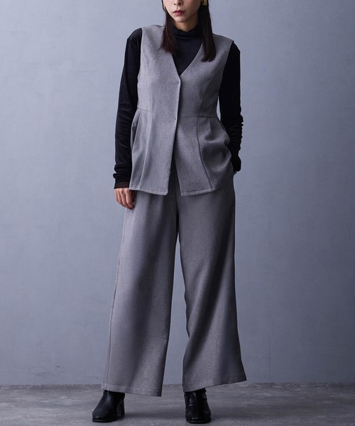 【ベスト&ワイドパンツのセットアイテム】【Fabric】温かみのあるモックツイストクロス素材【Design】タックのきいたゆったりベスト+ウエストゴムがうれしいワイドパンツのセットアイテム。ゆったりしたデザインは体系カバーにも。【Styling】セットアップはもちろん単品使いも楽しめます。ブラウスにも合わせやすく、ちょっとしたおよばれコーデにも◎オンオフで活用できる万能アイテムです。-------------------------■透け感:なし■裏地:なし■伸縮性:なし■光沢感:なし■生地の厚さ:普通-------------------------☆★お買い物をお楽しみいただく為に★☆★商品のお気に入り登録完売カラーの再入荷通知や、ラスト1点の通知、セールの通知も受け取ることができます。★ブランドのお気に入り登録新商品や再入荷等、ブランドのお得な情報をいち早く受け取ることができます。