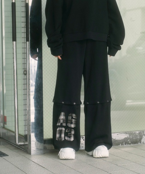 右裾のチェックパッチロゴがポイントのスウェットパンツ。スナップボタンでハーフパンツにもできる2WAY仕様です。 UNISEXサイズですが、ウエストは紐と裾はコードロックでサイズ調節可能です。 UNISEX チェックドッキングスウェット(AG253CS0905)とセットアップでご着用いただけます。