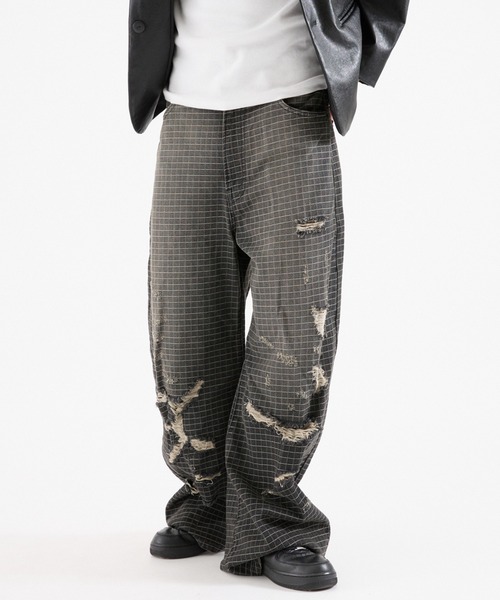 【 FTW / エフティダブリュー 】 ブランド名の<FTW>は“FOR THE WEEKEND”の略語で、“仕事や学校など制約の多い社会へのアンチテーゼを唱え、自身のアイデンティティが開放される週末のためのユニフォーム”というコンセプトを表現。 バックボーンには存在するのは音楽的要素や、日に日に存在感を高めるヴィンテージカルチャー。 これらの背景にインスパイアされた独自の世界観で表現する東京発のファッションブランド。 新作情報はInstagram公式アカウントからチェック! ↓ 【 @ftw_fortheweekend 】 ---------------------------------------------- 【 取り扱い方法 】 アテンションタグや洗濯表示を必ずご確認の上、ご使用下さい。 【 洗濯方法 】・液温は40 ℃を限度とし、洗濯機で非常に弱い洗濯ができる ・塩素系及び酸素系漂白剤の使用禁止 ・タンブル乾燥禁止 ・日陰のつり干しがよい ・底面温度160 ℃を限度としてアイロン仕上げができる ・ドライクリーニング禁止 ・非常に弱い操作によるウエットクリーニングができる ---------------------------------------------- 【ユニセックス】 目を引くボックスチェックのデニム。 シンプル過ぎないようにダメージを施し、ストリートスタイルにも落とし込める1着に。 バルーンの形にこだわり、トレンド感も逃さないアイテム。 後ろのポケットをダブルポケットにし、さりげないおしゃれポイントを。 ---------------------------------------------- ※モデル写真はサンプルにて撮影を行い、ビジュアルイメージの為に画像加工を行っております。お届けする実際の商品と仕様が異なる場合がございますので、商品詳細画像を必ずご確認の上ご購入ください。 ※ご覧のモニター環境や撮影環境により、実物の商品と多少色味が異なって見える場合がございます。 また表示のサイズ感と実物は若干異なる場合もございますので、予めご了承ください。 【 SHOPPING 】 ▼商品のお気に入り登録をクリック 再入荷やラスト1点、セール等の通知を受け取ることが出来ます。 ▼ブランド (FTW) のお気に入り登録 最新のブランド情報を受け取ることが出来ます。