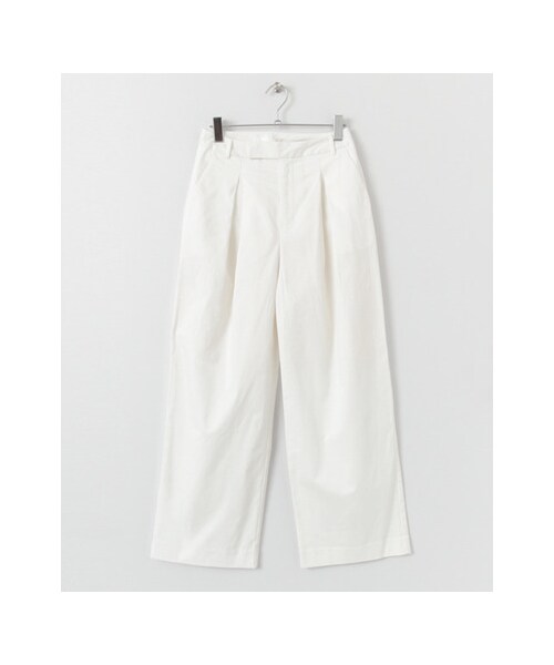 人気のタックワイドパンツが生地違いで登場。 程よくハリのある上品な面持ちなのでスニーカーやカットソー、スウェットなどのカジュアルアイテムに合わせてもラフすぎず、ワンランク上の大人のスタイリングを楽しんで頂けます。ウエスト周りにタックを施しているので腰回りのカバーにも一役買い、締め付けない履き心地の良さも魅力的です。※カラー名「BEIGE」の商品は、実際はブラウンベージュに近い色味です。