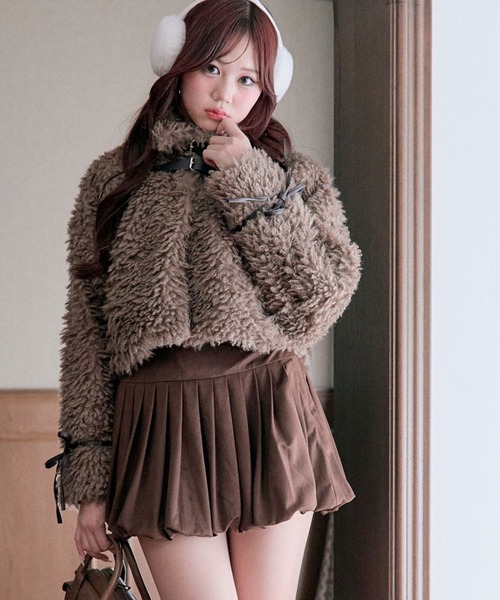 プードルファーとリボンで女の子らしさたっぷりなプードルブルゾン■デザイン・ふわふわのプードルファーが季節感たっぷりな主役級に映えるアウター。・配色デザインがポイントで、袖のリボンが女の子らしさをプラスするデザインです。・丸みのあるシルエットで可愛さとこなれ感を演出します。・スタンドネックで顔周りまで暖かく着れて、小顔効果も期待できます。・短めの丈感なのでスタイルアップ効果抜群で、合わせるボトムを選ばずに着れるのも嬉しいポイント。■カラー・アイボリー/モカの2色展開■スタイリング・ミニボトムと合わせてガーリーにまとめるのがおすすめ。・ワンピースに羽織れば、甘めアウターとしてデートコーデにも◎・デニムと合わせれば、カジュアルダウンして大人可愛く着こなせます。-----------------------------裏地:あり光沢感:なし透け感:なし伸縮性:なし手洗い:不可タンブラー乾燥:不可アイロン:不可-----------------------------※着用、お取り扱いの際は、商品についている品質表示とアテンションタグを必ずご確認下さい。※ご覧のモニター環境や撮影環境により実際の商品と多少色味が異なって見える場合がございます。ご理解の程よろしくお願いいたします。※引っかけ注意・粗い組織のものや、表面に凹凸があってルーズな組織のもの表面に糸が浮き出ているものは、ちょっとした不注意から引っかけてしまいがちです。取り扱いの際は取り扱い絵表示確認の上、十分注意してください。・着用時にベルトや、バックや周囲の壁など表面の粗いものとの摩擦や引っかかりに注意してください。・水洗いやクリーニングの際にも他の物ものとの引っかかりに注意して下さい。■お気に入り登録のおすすめ【気になるアイテムを登録】ハートをクリックしてお気に入りに登録すると完売カラーの再入荷やラスト1点の通知、セールの通知を受けとることができます。【ブランドを登録】新商品や再入荷、セール通知など、いち早くブランドの情報を受けとることができます。