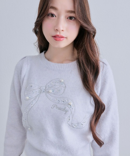 着映え間違いなしなリボンがかわいいニット ■デザイン ・ラインストーンとパールをちりばめたキラキラのリボンがかわいいデザイン。 ・程よくゆとりのあるシルエットで、女の子らしいふんわりとした雰囲気になります。 ・長すぎない絶妙な丈感でインしなくてもバランスよく着用していただけます。 ・ふわふわしたニット素材なので着心地◎ ■カラー ・オフ/ピンク/サックス/ブラックの4色展開 ■スタイリング ・スカート合わせでガーリーにまとめるのがおすすめ。 ・デニムやスウェットパンツなどカジュアルアイテムとの相性も◎ ・コンパクトなサイズ感なのでアウターも羽織りやすく、冬コーデに大活躍します。 ----------------------------- 裏地:なし 光沢感:なし 透け感:なし 伸縮性:あり 手洗い:可能 タンブラー乾燥:不可 アイロン:110℃まで ----------------------------- model:160cm ※着用、お取り扱いの際は、商品についている品質表示とアテンションタグを必ずご確認下さい。 ※ご覧のモニター環境や撮影環境により実際の商品と多少色味が異なって見える場合がございます。ご理解の程よろしくお願いいたします。 ※引っかけ注意 ・粗い組織のものや、表面に凹凸があってルーズな組織のもの 表面に糸が浮き出ているものは、ちょっとした不注意から引っかけてしまいがちです。 取り扱いの際は取り扱い絵表示確認の上、十分注意してください。 ・着用時にベルトや、バックや周囲の壁など表面の粗いものとの摩擦や引っかかりに注意してください。 ・水洗いやクリーニングの際にも他の物ものとの引っかかりに注意して下さい。 ■お気に入り登録のおすすめ 【気になるアイテムを登録】 ハートをクリックしてお気に入りに登録すると 完売カラーの再入荷やラスト1点の通知、セールの通知を受けとることができます。 【ブランドを登録】 新商品や再入荷、セール通知など、いち早くブランドの情報を受けとることができます。