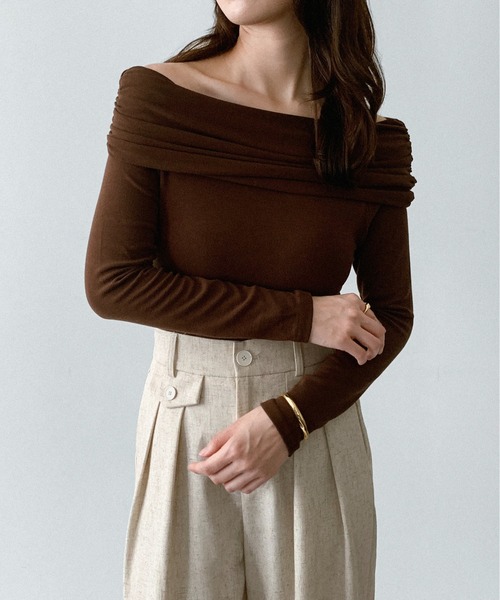 ![on:nue(オンニュ)の「【on:nue】[着用動画あり!/選べる6色展開] オフショルダーリブカットソー(Tシャツ/カットソー・レディース・ブラック/バーガンディー/ブラウン/ホワイト/ネイビー/グレー・FREE)」の3枚目の写真](https://c.imgz.jp/253/97390253/97390253b_8_d_500.jpg)