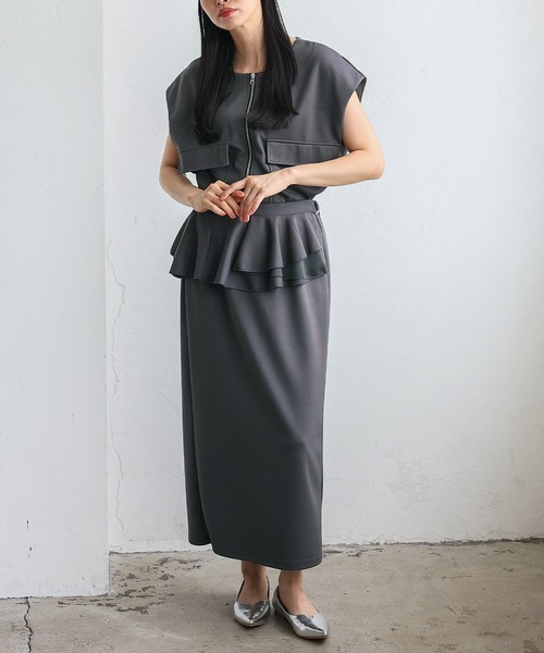 【デザイン】ノースリーブフロントジップベスト(セットアップ対応) フロントジップがモードな印象を引き立てる、大人カジュアルなベスト。 大きめのスクエアポケットを両サイドに配置し、 洗練されたシンプルさに遊び心を添えたデザインに。 伸縮性のある滑らかな素材を使用しており、 ストレスフリーな着心地を叶えます。 程よくゆとりのあるシルエットデザインなので、体系カバー力も◎ ノースリーブとして1枚でさらりと着るのはもちろん、 Tシャツやシアートップス、秋冬にはタートルネックなどとレイヤードして、シーズンレスに活躍します。 ジップを開けて羽織れば抜け感のあるスタイリングに仕上がり、デイリーからお出かけまで幅広く取り入れられます。 同素材のスカート(品番:blc-y93305)を合わせて セットアップコーデもおすすめです。 【サイズ等】 サイズ:FREE 総丈:52cm 身幅:55cm 肩幅:55cm 重量:270g 素材:ポリエステル49% レーヨン45% ポリウレタン6% …………………… 伸縮性:あり 裏地:なし 透け感:なし 生地の厚さ:普通 ポケット:あり …………………… 【お取り扱い上の御注意】 ・ネット使用。 ・洗うと多少縮みます。あらかじめご注意ください。 ・タンブラー乾燥禁止。 ・アイロンの際はあて布をしてください ・糸、編地の性質上、洗濯や着用中の摩擦により生地表面にピリングが生じることがあります。 ・水や汗で色落ち、移染する恐れがありますので、濡れた状態で放置しないでください。 また、お洗濯の際は他の物と一緒に洗わないでください。 ・粗い組成のものや、ルーズな組織のものはちょっとした不注意から引っかけてしまいがちですので、 取り扱いの際は取り扱い絵表示をご確認の上、十分注意してください。 ・着用時にベルト、バッグ、周囲の壁など、表面に凸凹のあるものとの引っ掛かりにご注意ください。 ・洗濯の際は他の物との引っ掛かりに注意してください。 ・ネックレス、指輪、時計等の装飾品は生地がほつれる原因になりますので着用後にお付けになることをおすすめします。 ・この商品は、摩擦(特に湿った状態での摩擦)や、 汗や雨などで濡れた際に他の衣料や下着(特に淡色)に色移りする場合がありますので充分に注意してください。 ・大変デリケートな素材を使用しておりますので、激しい運動や強度な力が加わると、縫い目が開いたり、 目寄れ(織り糸が滑って偏り、生地に隙間が開く)する事がありますのでご注意ください。 ・ファスナー部分のアイロン禁止 [カラー] ブラック・チャコールグレー モデル身長:164cm/着用サイズ:FREE ※撮影環境により実際のカラーとやや異なる場合がございます。 画像をご参照の上、ご了承頂けますようお願い致します。 ◆商品のお気に入り登録◆ 完売カラーの再入荷通知や、ラスト1点の通知、 セールの通知も受け取ることができますので、是非ご登録ください。 ◆ブランドのお気に入り登録◆ 新商品や再入荷などの情報を受け取ることができますので、是非ご登録ください。