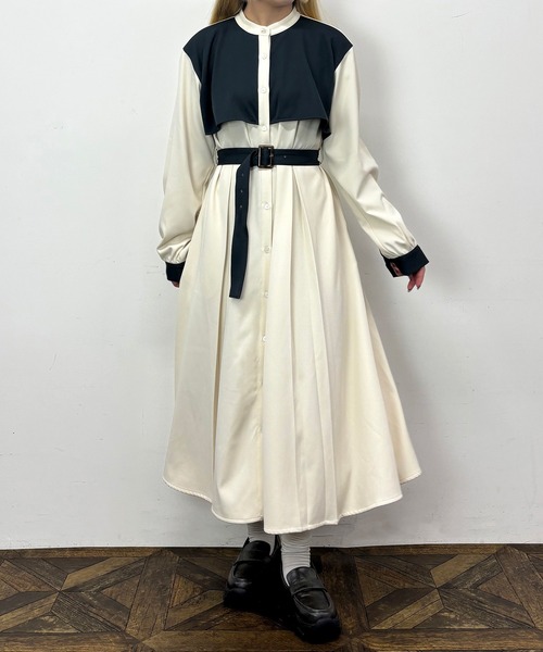 ケープ風の立体感のあるデザインと配色がかわいらしくも、バンドカラーが大人なワンピース。ゆるめのウエスト切り替えで、別付けのベルトを外すとAラインに近いシルエットになりますが落ち感のある生地で着太りせずに着用していただけます。スカートのインバーテッドプリーツが歩く度に揺れ、華やかな印象に。ショートブーツやパンプスはもちろん、スニーカー合わせでカジュアルダウンしたスタイリングもおすすめです。☆★お買い物をお楽しみいただく為に★☆★商品のお気に入り登録完売カラーの再入荷通知や、ラスト1点の通知、セールの通知も受け取ることができます。★ブランドのお気に入り登録新商品や再入荷等、ブランドのお得な情報をいち早く受け取ることができます。