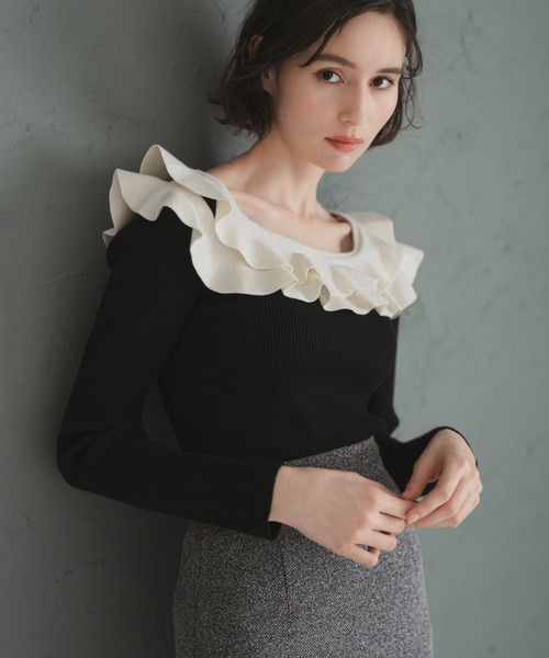 ひらりとしたフリルカラーが華やかさを演出するニット。伸縮性に優れたリブ素材を使用し、タイトなフィット感を演出します。すっきりとした首元のシルエットもポイント。パンツやスカートなど、あらゆるボトムスと相性の良いアイテムです。■fabric透け感[無し]裏地[無し]伸縮性[有り]生地の厚さ[普通]★《お気に入り登録》でお得な情報をGET★・「商品のお気に入り登録」で再入荷通知やラスト1の通知、セールやクーポンの通知も受け取ることができます!→ハートマークをクリック・「ブランドのお気に入り登録」で新商品や再入荷など、お得な情報を受け取ることができます!