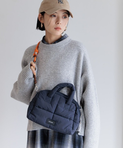 ーーー ころんとしたシルエットが特徴的なボストン型パフショルダー。 持ち手とボディは軽く、持ちやすい中綿デザイン◎ ショルダーストラップには長さ調節可能なパラコードを使用し、肩掛けをしてもスタイリングのアクセントになります。 ーーー ※屋外での撮影画像は光の加減で実際の商品より明るく見えたり、風合いが異なって見える場合がございます。 商品の色味はスタジオ撮影の画像を参考にして下さい。 ------------------------------------- ≪お買い物をよりお楽しみいただくために≫ ◆商品のお気に入り登録(ハートマークをクリック) 完売カラーの再入荷通知や、完売間近の通知、セールの通知も受けることができます。 ◆ブランドのお気に入り登録 新商品や再入荷など、いち早くブランドのお得な情報を受け取ることができます。 -------------------------------------