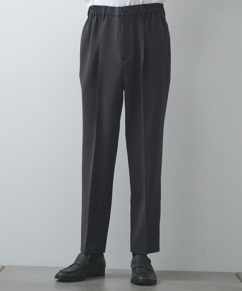 デザイン テーパード型のスラックス。 ウエストは紐で絞ることができるイージータイプです。 生地はハリ感があり、センタープレスが保たれる生地です。 素材 ・素材:ポリエステル100% ・透け感なし ・裏地なし ・伸縮性あり 東レの2種類の糸(ワルツプルエラ) 表ワルツ糸 落ち着きのある表面効果、やさしくソフトな風合い、耐久性などを持った新しい加工糸織物です。 裏プルエラ糸 ナチュラルなストレッチ感と適度な落ち感のある糸 2種類の糸を使いナチュラルな反発性と肌離れの良さを実感し、とても快適性のある素材に仕上げています。 -STUDIOUS- トーキョーブランドに拘りセレクトするSTUDIOUSが提案するオリジナルアイテム。 トレンド感あるアイテムはもちろん大人の方にもお勧めしたいベーシックなアイテムまで幅広く提案。 ※店舗と在庫を共有しておりますので、受注確認メールが届いてもご注文のタイミングによりましては売り切れになる可能性がございますので、予めご了承ください。 ※商品の色味につきまして、撮影環境、お客様のお使いのPCのモニター環境により実際のカラーと画像の色味が違って見える場合が御座います。予めご了承の上、ご注文下さい。