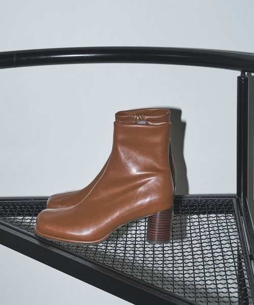 《WEB+一部店舗での取り扱い》 昨年も人気だったショートブーツが今年も登場! つま先に厚みを付けたバルブトゥ(おでこ形状)のショートブーツ。 つま先の厚みとシリンダーヒールの高さで履いた時にカジュアル過ぎないように、秋冬のボトムとのシルエットのバランスに拘りました。 素材はストレッチを効かせたツヤ感のある合皮スムースを使用し、まるでソックスのような柔らかい履き心地です。 縫い割に止水テープ、底面に防水シートを貼り、完全防水ではありませんが軽い雨の日でも履いていただけるのでお天気に左右されずお楽しみいただけるブーツです。 ********************** 【スタッフ着用コメント】 《スタッフT》 普段サイズ:25/着用サイズ:XL サイズ感: 薄手ソックス着用で丁度よい 履き心地:薄手のソックス着用で窮屈感なく 履く事が出来ました。 筒周りは適度なフィット感が履きやすいです。 ********************** *防水仕様の商品ではありませんのでご了承ください。 *耐滑性を保証するものではない為、滑りやすい場所での着用はお避け下さい。 *デザイン上、小雨程度までのご使用をおすすめ致します。 *サイズによりヒールの高さが多少前後することが御座います。予めご了承ください。 *照明の関係により、実際よりも色味が違って見える場合があります。 またパソコン・スマートフォンなどの環境により、若干製品と画像のカラーが異なる場合もございます。 *商品の色味は、商品アップ画像をご参照ください。
