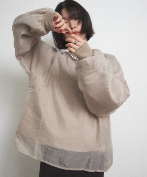 【Shelly island /シェリーアイランド】人気の透け感素材と重ねたトレーナーTOPS《detail》・オーガンジーがレイヤードにトレーナーTOPS・透け素材とカットを重ねたことにより、1枚でもこなれ感が出ます。・透け感が苦手でもレイヤードになっていることで透けなく、 カジュアルになりすぎずおしゃれなこなれた印象で着用いただけます。・柔らかな肌触りと軽やかな着心地で、女性らしい優雅さを演出します。・カジュアルな中にも上品な印象を残し、ロマンティックな雰囲気を纏う一枚です。シンプルなデニムとも相性抜群で、 様々なスタイルに合わせやすくおすすめです。《158cm staff》・オーバーシルエットのトレーナーにシアーがレイヤードされたデザインで 体型カバーとこなれ感が出る一枚です。《fabric》・透け感:無し・裏地:あり・伸縮性:なし・生地の厚さ:普通◆商品のお気に入り登録【♡】登録のお願い 完売カラーの再入荷通知、残り1点の通知、セール等値下げした時の通知も受け取ることができます。◆ブランドのお気に入り登録 新商品や再入荷など、いち早くブランドのお得な情報を受け取ることができます。 是非ご活用ください。※サンプルにて撮影をしておりますので、実際の商品と柄の出方が異なる場合がございます。※この商品は、摩擦や、汗・雨などによる水ぬれにより色落ちが生じる場合がございます。 衣服や周囲のものに色移りする恐れがありますので、白色や淡色のものと組み合わせる際は、十分にご注意ください。※撮影環境により多少実際のカラーと異なる場合がございます。※生産時期により若干の色ブレやサイズの変動が生じる場合がございます。※表示のサイズ感と実物は異なる場合もございます。