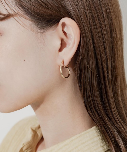 【見る角度で表情が変わる個性派フープ】 ●いびつな形の新鮮味あるフープデザイン ●滑らかな曲線とゴールドの艶が、顔周りを上品に演出 ●個性的ながらもコーデのテイスト問わず活躍 シンプルながらもひと癖あるデザインがSMELLYらしい、ニュアンスフープイヤリング。 滑らかなメタルの曲線が、光を受けて美しく輝きます。 程よいボリューム感で、どんなスタイリングにもすっと馴染みます。 【2025 Autumn/Winter】【25AW】 ※金属アレルギー症状が出にくいチタン、ニッケルフリー素材、ステンレス等を使用しています。すべての方にアレルギーが起こらないということではありませんので、万が一アレルギーの症状が出ましたら直ちに使用を中止してください。 ※メッキ製品(特に銀メッキ)は変色しやすいため、こまめなお手入れで防止してください。長期放置やスプレー香料などの同時使用は、特にお避けください。 ※メッキ製品は、アレルギー体質の方や体調が低下している方など、かぶれることがあります。肌に異常を感じた時はご使用をお止めいただき専門医にご相談ください。 ※アクセサリーは壊れやすいものです。取り扱いに注意していただき大切にご使用いただけるようお願い申し上げます。 重量(片耳) : 約2g ※商品画像は、光の当たり具合やパソコンなどの閲覧環境により、実際の色味と異なって見える場合がございます。予めご了承ください。 ※商品の色味の目安は、商品単体の画像をご参照ください。 ▼お気に入り登録のおすすめ▼ お気に入り登録された商品は、マイページにて現在の価格情報や在庫状況の確認が可能です。 お買い物リストの管理にぜひご利用ください。 -