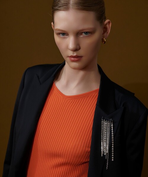 【alllureville 2025 autumn&winter】 揺れるしだれビジューが華やかなブローチ。 ※照明の関係により、実際よりも色味が違って見える場合がございます。 またパソコン・スマートフォンなどの環境により、製品と画像のカラーが異なる場合もございます。 予めご了承ください。