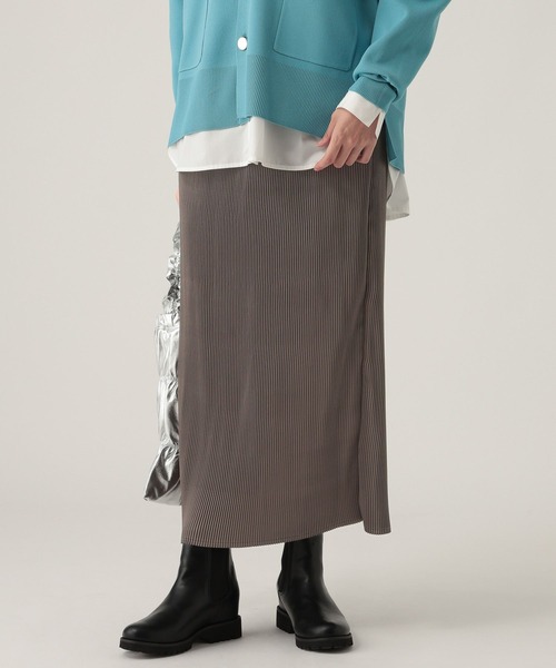 \縦ラインですっきり見え、季節を問わず使える一枚/【悩みに“効く”ポイント】プリーツの縦ラインが強調されることで、スタイルアップ効果◎。光沢感のある素材を使用し、カジュアルにもきれいめにも活躍する万能デザイン。伸縮性が抜群なので、快適に履けるのが嬉しいポイント。スエットやシャツ、ボリュームのあるニットにも合わせやすく,季節を問わないアイテムです。【シルエットの魅力】・ナロースカートの細身ラインで、自然に脚を美しく見せます。・プリーツ加工が動きを出しながら、全体に軽やかさをプラス。・シンプルながら存在感のあるデザインが、オンオフ問わず活躍します。【スタイリング】・スエットとスニーカーでこなれ感あるカジュアルコーデに。・シャツやパンプスで縦ラインを活かしたきれいめスタイルにも◎。・ニットと組み合わせれば、季節感たっぷりのリラックスコーデに。------------------------【お気に入り登録のおすすめ】■商品のお気に入り(♡)登録┗完売カラーの再入荷通知や、完売間近の通知、ZOZO店のみのセールなどの通知を受けることができます。■ショップのお気に入り(♡)登録┗新商品や再入荷など、いち早くブランドのお得な情報を受け取ることができます。------------------------