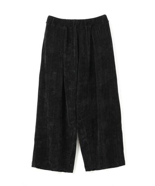 着心地の良いベロア素材を使用したベロアジャガードタックパンツです。ダイアとアラン柄のシックで上品な雰囲気が魅力的なボトムアイテム。ニットのように見えて光沢感がありモードなイメージで着用していただけます。ウエストはリラックス感のあるゴムウエスト。長すぎない丈感なので小柄方にも穿きやすい長さです。 Point シルエット:スタンダード デザイン:その他 ウエスト:ゴムあり Detail 裏地:なし 透け感:なし 伸縮性:あり 光沢感:あり ポケット:サイド ※商品画像は、光の当たり具合やパソコンなどの閲覧環境により、実際の色味と異なって見える場合がございます。予めご了承ください。 ※商品の色味の目安は、商品単体の画像をご参照ください。 こちらの商品 は mizuiro ind / MARcourt にてお取り扱いしております。 店舗在庫等については直接店舗にお問い合わせください。