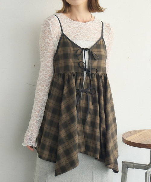 <今年らしいレイヤードコーデに取り入れたいワンピース> ▼デザイン 今年トレンドのレイヤードミニワンピース。 裾がイレヘムになっていて、非対称な裾の広がりがオシャレなワンポイント! 前後2wayで着用頂けるので、気分に合わせたアレンジが楽しめます◎ 特に、チェック柄は秋見えするおすすめカラー! ▼コーディネート トップスはTシャツからタンクなど気温に合わせて袖丈や素材を調節◎ 裏地はついていないので、デニムパンツやスウェットパンツでカジュアルに合わせてみて! ------------------------------ 生地感:普通 伸縮性:ある 透け感:なし 裏地:なし ------------------------------ ▼ブランド紹介 RETRO GIRL (レトロガール) 自分らしい“ベーシックアイテム”と 新しい自分の”トレンドアイテム”が 見つかる場所 今らしいファッションを楽しむ 女性のためのブランド #ビスチェ #ワンピース #レイヤードワンピース #トレンドアイテム #トレンドビスチェ #レーススカート #チェックワンピース ▼注意事項 ※撮影環境やモニター環境によって実際の商品とお色味が 多少異なってみえる場合がございます。 品番:RF518122T001 / 品名:リボン2WAYチュニックキャミOP