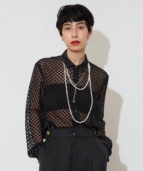 オパールドット柄が特徴のジャストなサイズ感の程よい透け感が今年らしいシャツです。 トップにはヴィンテージ釦を使用しています。 シンプルなジャケットに合わせるだけでも今年らしいコーディネートになります。 トルコ、IPEKER社のインポート素材です。 優れた技術をお持ちな工場で、難しいプリントや、織に品質も保っています。 IPEKER社はサスティナブルに対して積極的に取り込んでいるメーカーです。 今回使わせていただいてるオパール加工の生地は独特のハリ感を出してます。 ※サンプル撮影のため実際の仕様と異なる場合がございます。 予めご了承ください。 ■透け感 あり ■伸縮性 なし ■光沢感 なし ■裏地 なし ■生地の厚さ 薄い