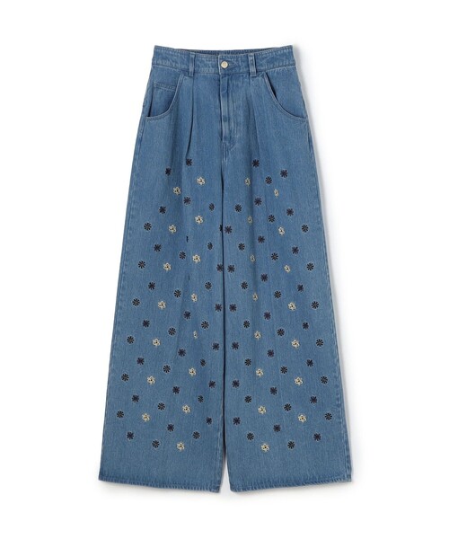 強撚糸を使用し織り上げたシャリ感を感じていただけるデニム素材に、手書きのボタニカル柄を刺繍したシリーズ。デニムのディテールとスラックスの両方の良さを活かしたデザインでカジュアル過ぎずに着用いただける一着。タイトなトップスを合わせるのはもちろん、オーバーサイズのシャツやニットなどとのリラックス感のある着こなしもおすすめです。ほど良く存在感があり、スタイリングのアクセントになってくれるアイテム。※商品の色味は、商品単体または素材アップ画像をご確認ください2025AW商品店舗にお問い合わせの際は、下記の商品番号をお申し付けください。商品番号:12-04-54-04133※※お取扱い上の注意※※・刺繍のテクニックを施したデザインです。大変デリケートですので、ご着用・保管共に十分ご注意ください。アクセサリー、バッグ、ベルトのバックル等での引っかけや、突起物、表面のザラついたものとの接触やスレに十分ご注意ください。クリーニングやお洗濯の際も他のものとの接触や引っかけ防止の為、裏返し洗いをおすすめします。・インディゴ染料を使用した素材を使用しています。染色の特性上、新しいうちは特に色落ちしやすく、他のものと擦れ合うと色移りします。新しいうちは白や淡い色の服・バッグ・ベルト・椅子など身の回りの品への色移りにご注意下さい。その他、お取扱い上の注意をよくご確認の上、ご使用をお願いします。