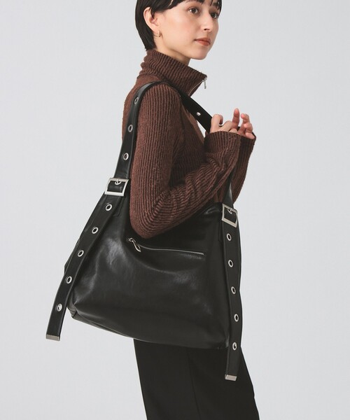 最旬ムード漂う万能バッグ■デザインサイドのベルトデザインが特徴的で、ショルダーバッグとしても肩掛けバッグとしても自由にアレンジ可能。その日のスタイルや荷物の量に合わせて、持ち方を簡単に変えられます。外側のジップの引き手にまでこだわったデザインが魅力です。■コーディネートカジュアルなコーディネートはもちろん、モード系ファッションやトレンドのY2Kスタイルにもぴったりハマります。どんな装いもワンランクアップさせてくれる、スタイリングの幅が広がるアイテム。■サイズ大容量バッグなので、普段使いはもちろん、ちょっとした旅行や荷物が多い日にも最適です。■素材高級感がありながらも、軽量で耐久性に優れるフェイクレザーを使用。【製品仕様上の特性について】本製品のハンドルに採用している金属製のバックルは、デザイン上のアクセントであり、耐久性を高めるための仕様となっております。お使いいただく方の体型や持ち方によっては、バックルが腕などに触れる場合がございますので、あらかじめご了承ください。※光の当たり具合やパソコンなどの閲覧環境によって、実際の色味と異なって見える場合がございます。予めご了承ください。※商品の色味は商品単体で撮影した画像をご参照ください。