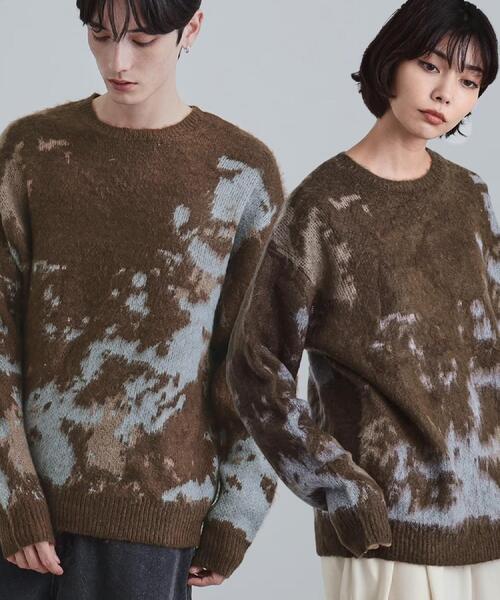 【素材】アクリル糸を使用しています。ゲージ:7GG3色のダブルジャカードでアブストラクト柄を表現しています。【デザイン】3つの色を使ったアブストラクト柄が特徴のプルオーバーニット。ミドルゲージの糸を使ったダブルジャカードと、起毛した表面が適度な厚みがあり、ソフトな肌触りが特徴です。インパクトのあるミドルゲージのニットなので、オーバーサイズに仕上げることでトレンド感をプラス。裾リブ、袖口リブにはストレッチ糸をプレーティングすることで、メリハリのあるシルエットに仕上げています。合わせるパンツを選びません。一枚でスタイリングの主役になるアイテムです。【推奨サイズ】01サイズ(S):160~170cm02サイズ(M):165~175cm03サイズ(L):170~180cm※標準体型を基にした目安になります。- BRAND CONCEPT -時代を超えて支持されるトラディショナルなアイテムをベースに、アソビ心とストリートの自由な発想を取り入れ、日本独自のミックススタイルを提案します。【気になる商品はお気に入り登録をおススメ】▼商品のお気に入り登録完売しているカラーの再入荷通知や、ラスト1点、セールの通知をお知らせいたします。▼ブランドのお気に入り登録新商品や再入荷など、いち早くブランドの情報を受け取ることができます。※照明の関係により、実際よりも色味が違って見える場合があります。また、パソコン・スマートフォンなどの環境により、若干製品と画像のカラーが異なる場合もございます。モデル情報:身長180cm B89 W72 H93 着用サイズ:03(L)店舗へのお問い合わせ商品番号:170-14113●製品寸法:01(S):着丈65cm B112cm 袖丈57cm 肩幅52cm02(M):着丈67cm B116cm 袖丈58cm 肩幅54cm03(L):着丈69cm B120cm 袖丈59cm 肩幅56cm備考: