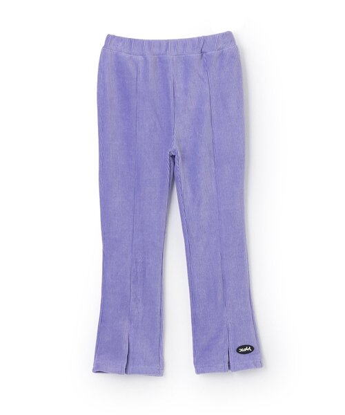 起毛感があるコーデュロイ調の素材を使用したレギンスです。裾にかけて広がるフレアシルエットで、きれいなレッグラインを演出してくれます。センターラインと前のスリットデザインがおしゃれなアクセント。ワンピースやトレーナーなど、お手持ちのアイテムと好相性です。内側にお名前を記入できるタグつき。【おすすめの着用時期は秋冬シーズン】【透け感】透けない【生地の厚さ】普通【伸縮性】あり【裏地】なし【ポケット】なし【アジャスター】あり
