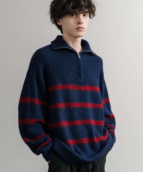 配色ボーダーが映える!ウォーム感のある見た目のハーフジップシャギーニット。またモチモチとした弾力性のある質感で、ニット特有のチクチク感を軽減◎程よい厚さで、メインとしてはもちろん、冬はインナーとしても活躍します。■ ウォーム感のあるシャギーニット毛足の長い糸を使った、ウォーム感のある見た目のハーフジップシャギーニット。7G天竺編みの肌に馴染む柔らかさと、伸縮性でストレスフリーな着用感に。またモチモチとした弾力性のある質感で、ニット特有のチクチク感を軽減◎■ 配色ボーダーが映えるハーフジップ柔らかいドレープ感に、配色ボーダーが映えるデザインは大人カジュアルにぴったり。襟は長めにデザインされており、ジップを閉じると顔まわりに程よいボリュームが生まれ、開けると抜け感が出て、リラックスした雰囲気へと表情が変わります。■ リラックスシルエットゆったりとした身幅やアームホールに、ドロップショルダーで楽な着心地。袖・裾をリブ編みにすることでメリハリが付き、ちょっとしたアクセントに。程よい厚さで、メインとしてはもちろん、冬はインナーとしても活躍します。■ ユニセックスアイテムカジュアル、ストリート、きれいめ、韓国系など、スタイルを問わない万能さ。メンズ・レディースを問わない男女兼用の対応商品で、プレゼントにもオススメ。ペアやカップルコーデのお揃いにも最適で、家族でシェアしたりと幅広く活躍!■着用コメント・モデル MASASHI:身長173cm / 体重55kg着用サイズ:L着丈:お尻にかぶるくらいの長さでした。肩幅:肩の落ちたシルエットで、ゆるっとした雰囲気でした。身幅:ゆったりとしていて動きやすかったです。・スタッフA:身長165cm / 体重52kg / 普段S-M着用着用サイズ:M着丈:お尻がすっぽりと覆える丈感でした。肩幅:肩の落ちた、ゆるいシルエットで着られました。身幅:余裕のあるサイズ感で、動きやすかったです。・スタッフB:身長180cm / 体重64kg / 普段XL着用着用サイズ:L着丈:長すぎず、バランスのとれた丈感でした。肩幅:肩が落ちていて、窮屈感はなく楽でした。身幅:中にインナーを着ても、余裕がありました。【お買い物をお楽しみいただく為に!】▼商品のお気に入り登録完売カラーの再入荷通知や、ラスト1点の通知、セールの通知も受け取ることができます。▼ブランドのお気に入り登録新商品や再入荷等、いち早くブランドのお得な情報を受け取ることができます!※画像の商品は光の照射や角度、お使いのモニター環境により実物と色味が異なる場合がございます。