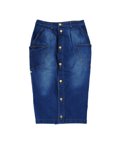 中肉のデニム素材を使用したペンシルスカート。メルシーボークー、定番の「m」「b」ステッチポケットやブランドロゴ入りのオリジナルボタンがアクセントになっています。素材は足運びのしやすいストレッチ混デニムを使用し、細身のシルエットに仕上げました。配色のステッチに、ボタンフライの仕様です。この製品は独特な風合いを出すため、製品加工を行っております。1点ごとにサイズや風合い等、特徴が異なりますのでご了承ください。Torso:H163.5 B80 W58.5 H86 着用サイズ:01サイズ