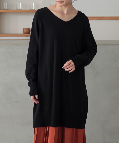 シンプルなのにお洒落、私の定番ニット。素材・ディテール、 全てにこだわった綿ニット。無駄を削ぎ落したシンプルさが魅力の Vネックニットチュニックです。ただのシンプルでは終わらない、風合い綿ニット。ふんわりと空気を包むように柔らかく撚った細番手の糸にこだわりました。薄すぎず、厚すぎない柔らかな肌触りと絶妙な着心地を実現。満足をお届けする為に、丁寧に丁寧に編み上げたから実現した肌触りと風合い。この糸ならではのニュアンスのある色や風合いをぜひお楽しみください。風合い、至福の着心地。爽やかに、さらりと着られる薄手のコットン100%素材。とろけるような柔らかさで素肌にも肌触りよくお家でもお洗濯できる評判のオリジナル素材です。年中着ていたくなるほどの風合いと、 着回しの良さを是非体感してください。楽ちん×スタイルアップを叶える!絶妙な「ゆる感」背中に張り付かないように、後ろヨーク切り替え下はギャザー入り。気になるお尻や太ももをカバーする長め丈。キレイにデコルテを飾るVネックデザイン。裾はのっぺりとした印象にならない広めのリブデザイン。「大人キレイをつくる。」洗練された、シンプルVネックデザイン。素材、デザイン、すべてにこだわったここだけのオリジナルロングニットです。■製品についての注意書きニット製品につきまして。ニット素材の持つ特性として編み上げる行程やプレス仕上げによって多少サイズや風合いの個体差が生じる場合がございます。着用した時と実寸の長さが変わる可能性がございます。また、着用の際ピリングが避けられず、完全に防止することはできません。毛玉取り器等で丁寧に取り除いてください。ご了承の上、ご購入いただきますようお願いいたします。