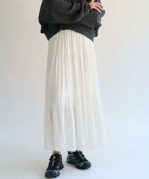 chiffon tiered sk [アイテム詳細] 動くたびに揺れるシフォン素材が女性らしいティアードスカート。 マキシ丈で体型カバーもしっかりとしてくれます。 ウエストがバンディングのため、楽で安定した履き心地です。 [素材] ポリエステル100% 生地の厚さ やや薄手 透け感 あり 伸縮性 あり 裏地 あり ポケット なし [品番] K210205_IVO [モデル詳細] model :171cm (freeサイズ着用) [ご一読ください] ※ご予約商品のお届け時期は、注文履歴ページよりご確認ください。 ※商品のお色味はご覧になっているモニターにより多少の違いが生じることがあります。 ※予約商品の画像はサンプルで撮影しております。 ※実際の製品とは仕様や素材、サイズや色味等が若干異なる場合がございますので予めご了承ください。 ※生産の都合上、発送予定時期が前後する場合がございますので予めご了承ください。 ※ご注文いただいた予約商品のお届け時期は、注文履歴ページよりご確認いただけます。 ※他のキャンペーンにより、期間中に価格が変動する場合があります。 ※独自のタイムセールなどの施策により、実店舗と価格差が発生する場合がございます。 ※セールは予告なく終了させていただく場合もあります。 _________________ [ブランドのお気に入り登録] ブランドサイト上部の♡をクリックし、お気に入り登録をお願いいたします。 新作アイテムの入荷や人気アイテムの再入荷、タイムセールやクーポンなど、いち早くブランドのお得な情報をお届けいたします。 [商品のお気に入り登録] 商品ページの♡をクリックし、お気に入り登録をお願いいたします。 お気に入りアイテムのセールや再入荷、残り1点の通知を受け取ることが出来ます。 アプリの通知設定をONにするとアプリでも受け取ることができます。 _________________ [ブランドコンセプト] "彼の"服を借りたような、ほどよくゆるいクールなアイテムをプラスし、凛々しく芯の強い、ハンサムな女性へ。
